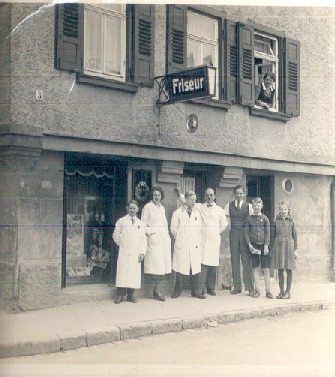 Das Bild entstand im Jahre 1954, die Berta kochte jeden Samstag für die ganze Belegschaft und alle versammelten sich in der kleinen Küche im 1. Stock über dem Frisörladen.